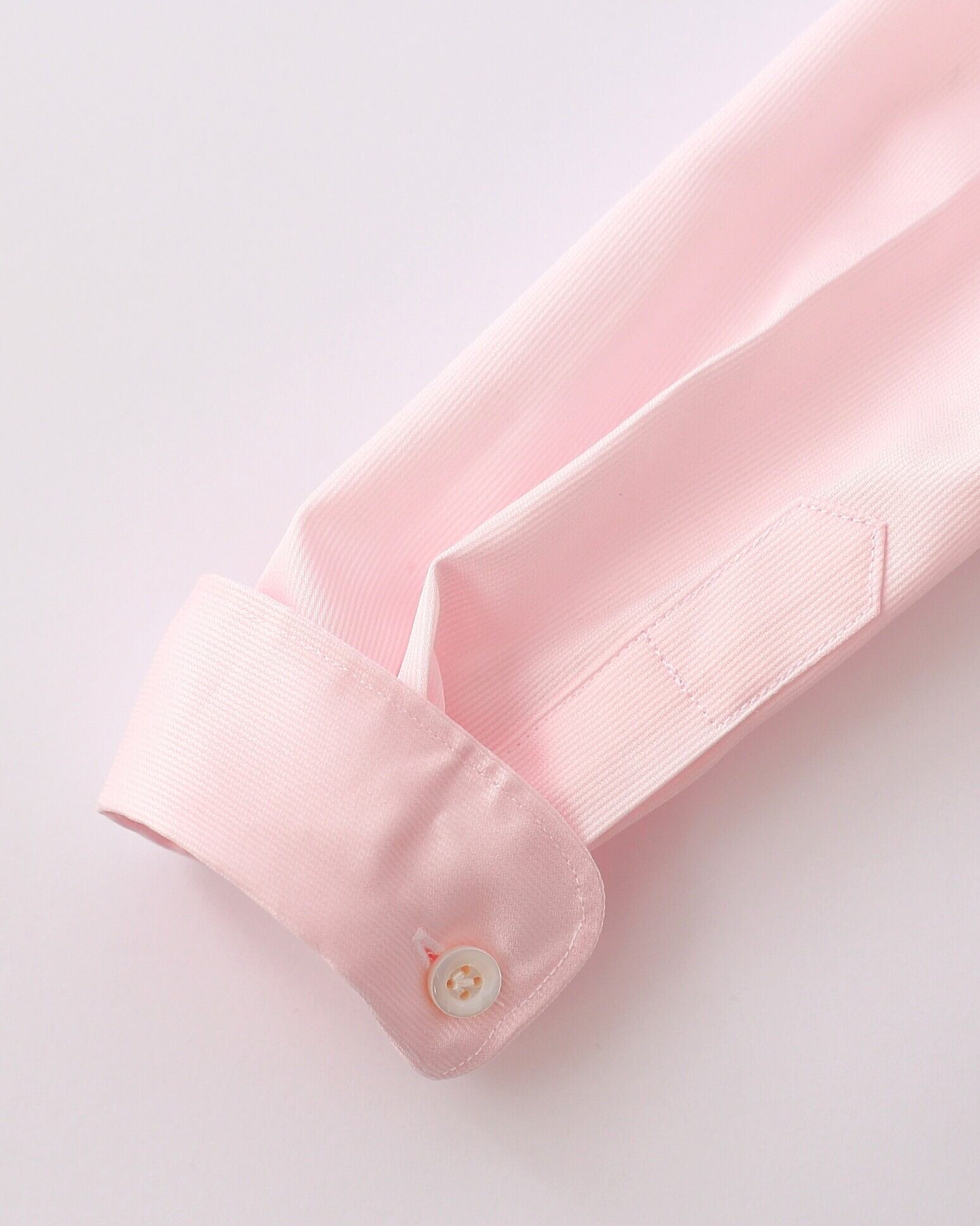 コットン100%のシワになりにくい形状安定素材を使った、ラウンドカラーのドレスシャツです。優しいペールピンクの色味、ハリと光沢はほんのりエレガントな香り。女の子らしさと上品さを両立させた、美しさをお楽しみいただけます。シンプルながら、おでかけや発表会などで、驚くほど着映えする一枚です。