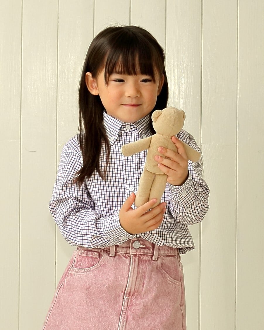 サイズアウト防止のために裾と袖は少し長く設定しております。