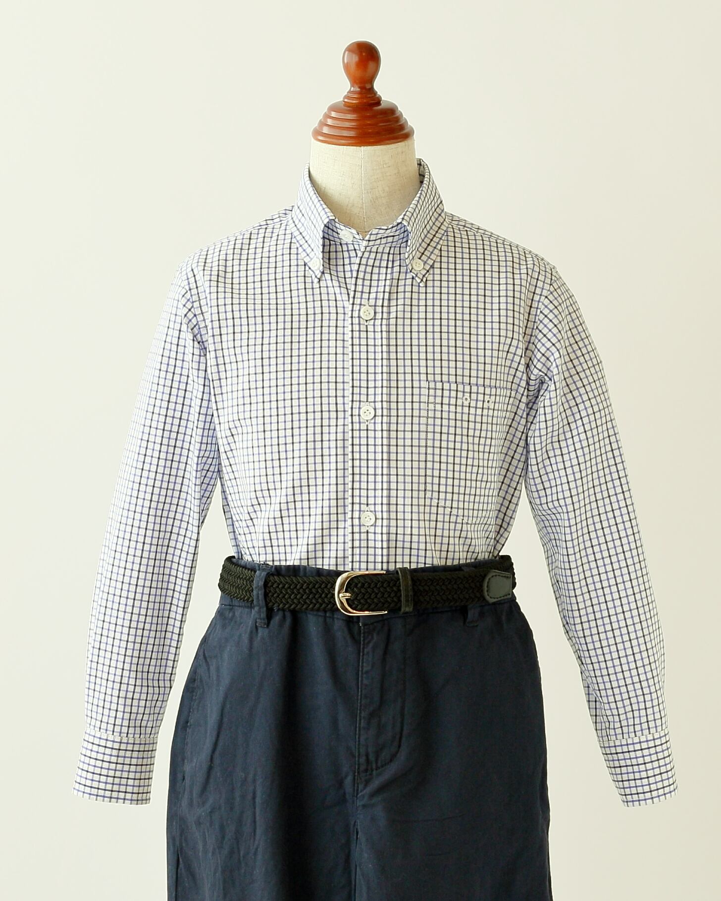 コットン100%のタッタソールチェックを使用した、ボタンダウンカラーシャツです。ふんわりとやわらかく肌ざわりの良い質感は、安心感のある着心地をお届けします。ブルー&ブラックのチェックはスッキリと見えて、キレイめの日常着にぴったり。カジュアルからセミフォーマルまで対応できて、毎日のように着せたくなる一枚です。